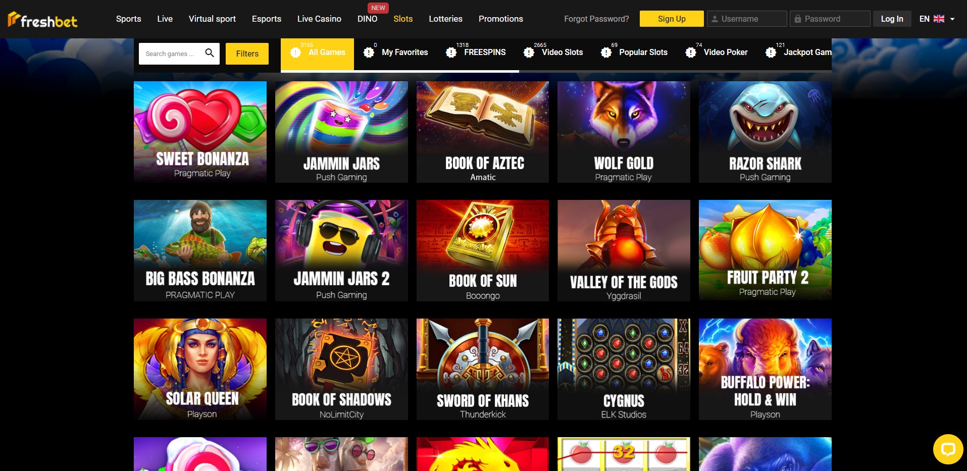 El sistema Freshbet destaca por su gran variedad de juegos. Los jugadores pueden elegir entre 6000 títulos diferentes, que abarcan desde juegos de bote tradicionales hasta atractivas tragamonedas. Cabe destacar que el casino en línea se centra en las tragamonedas, con más de 4000 títulos solo en ese grupo.
